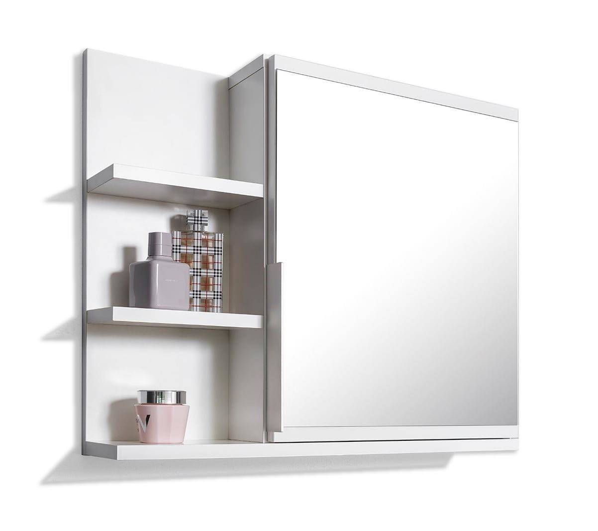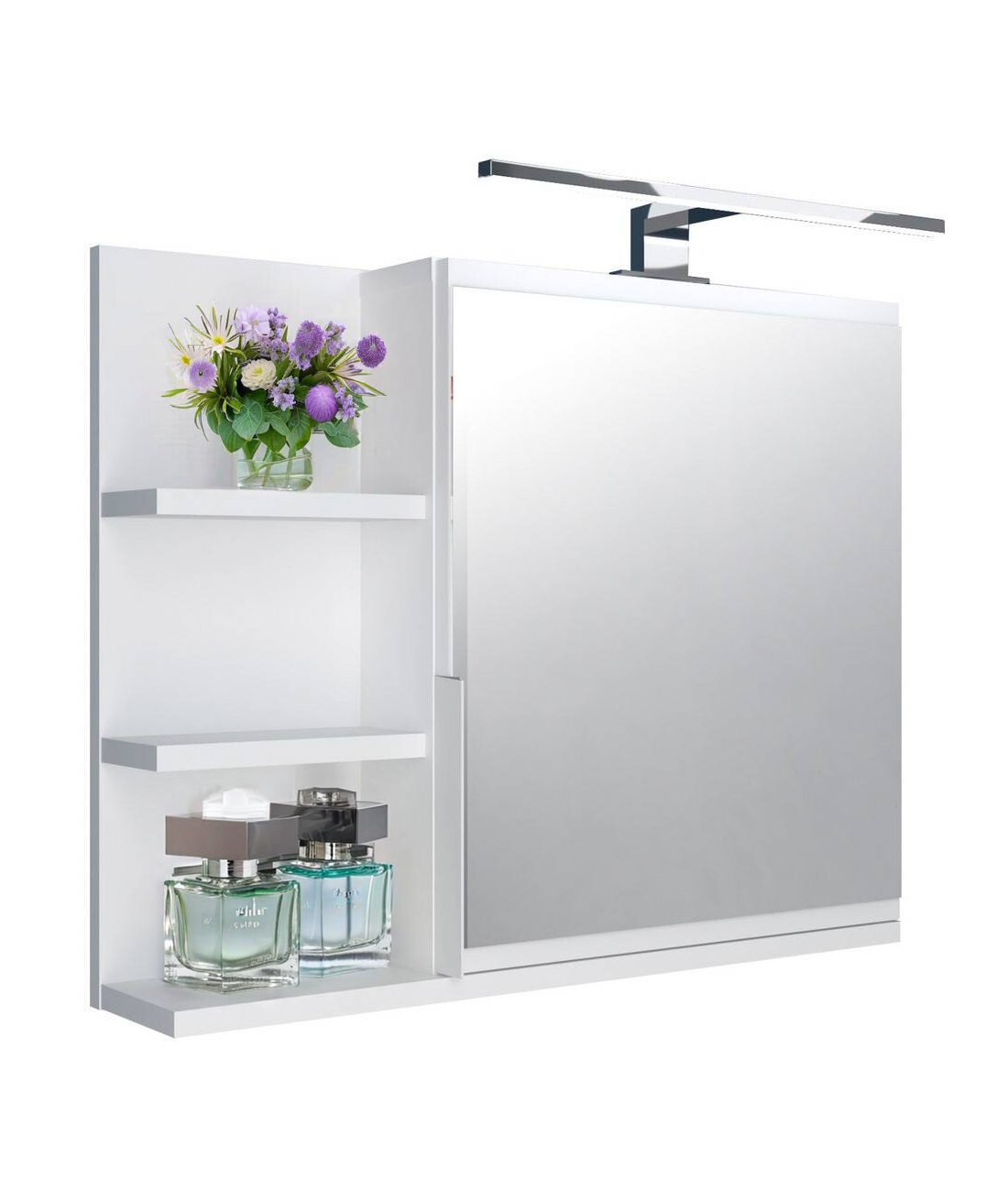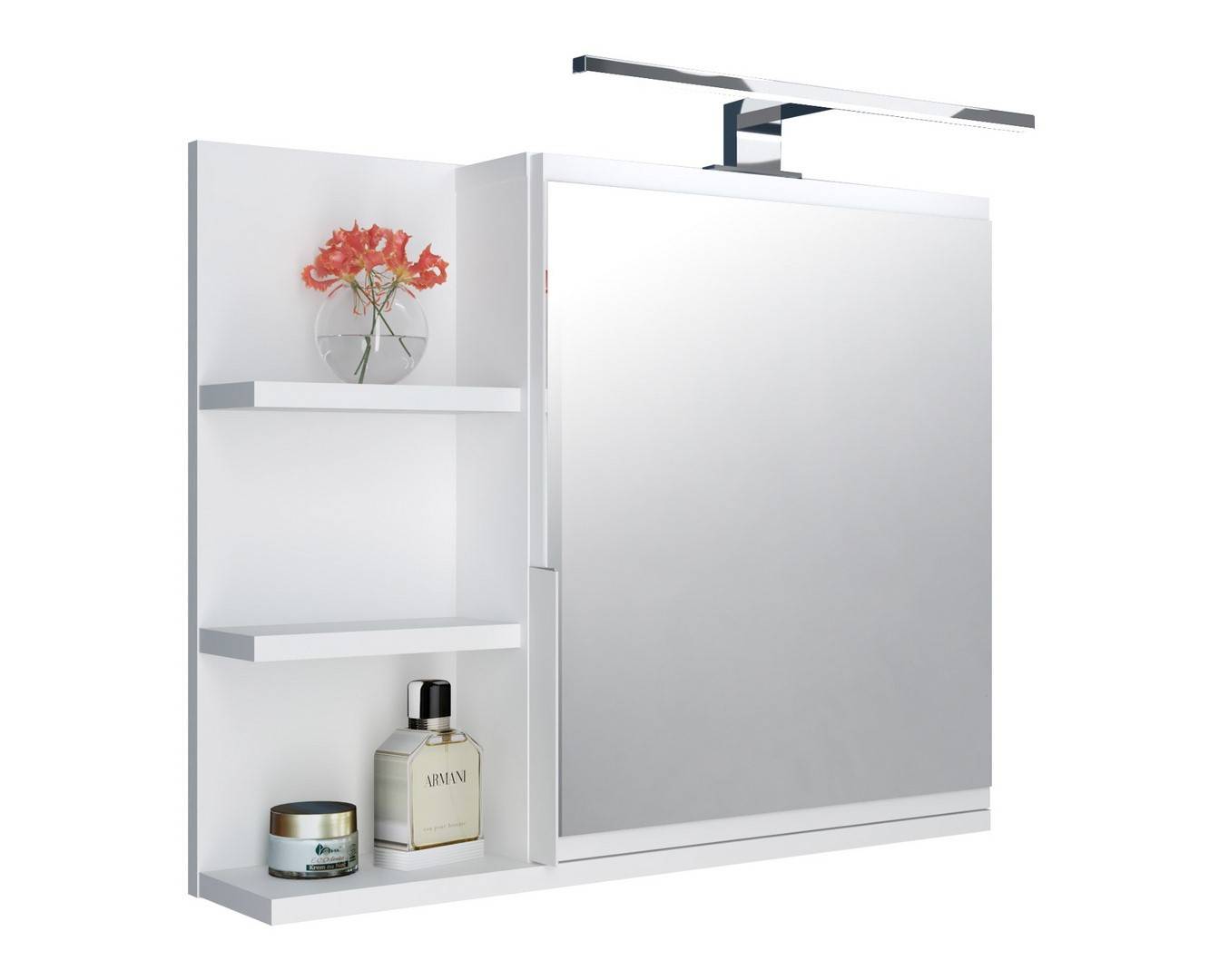 Szafka łazienkowa z lustrem, półkami i oświetleniem LED - biała lewa
