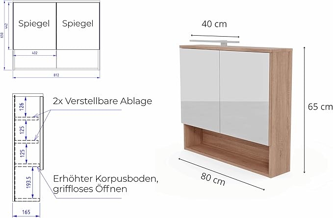 Szafka łazienkowa z lustrem i LED Better Home 80 cm dąb sonoma