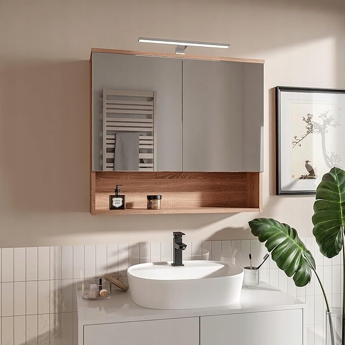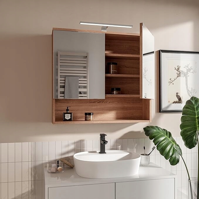 Szafka łazienkowa z lustrem i oświetleniem LED Szafka lustrzana dąb sonoma
