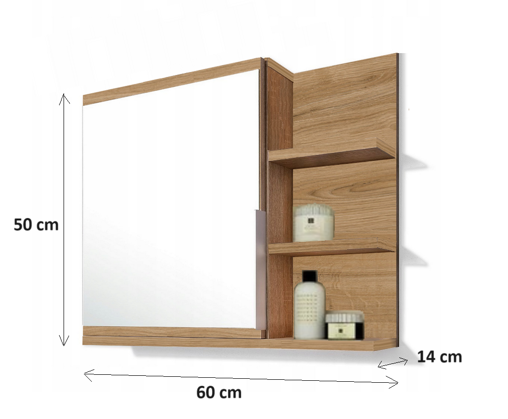 Nasza szafka z lustrem to mebel produkcji polskiej, który łączy dobrą cenę z bardzo wysoką jakością. Funkcjonalna konstrukcja, dzięki której uporządkujesz najważniejsze kosmetyki i akcesoria.