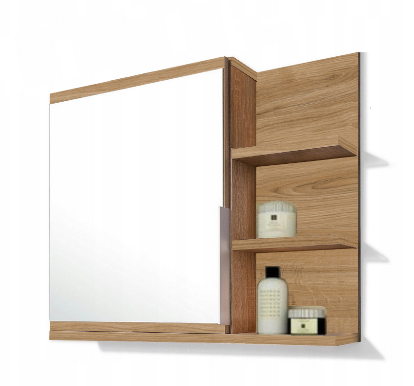 Modna i funkcjonalna szafka łazienkowa z lustrem i półkami - dąb odwieczny