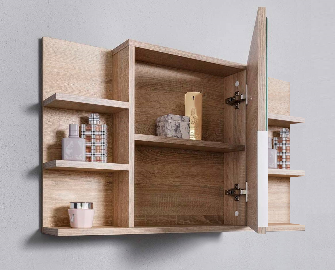 Szafka łazienkowa z lustrem, półkami i oświetleniem LED 80x50 cm - dąb sonoma