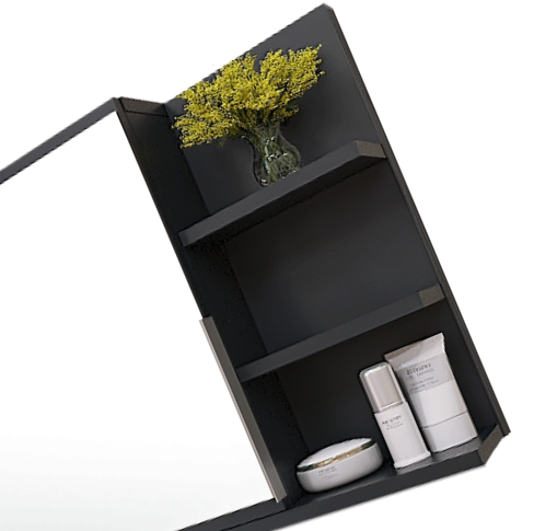 Szafka łazienkowa z lustrem, półkami i oświetleniem LED - czarna prawa