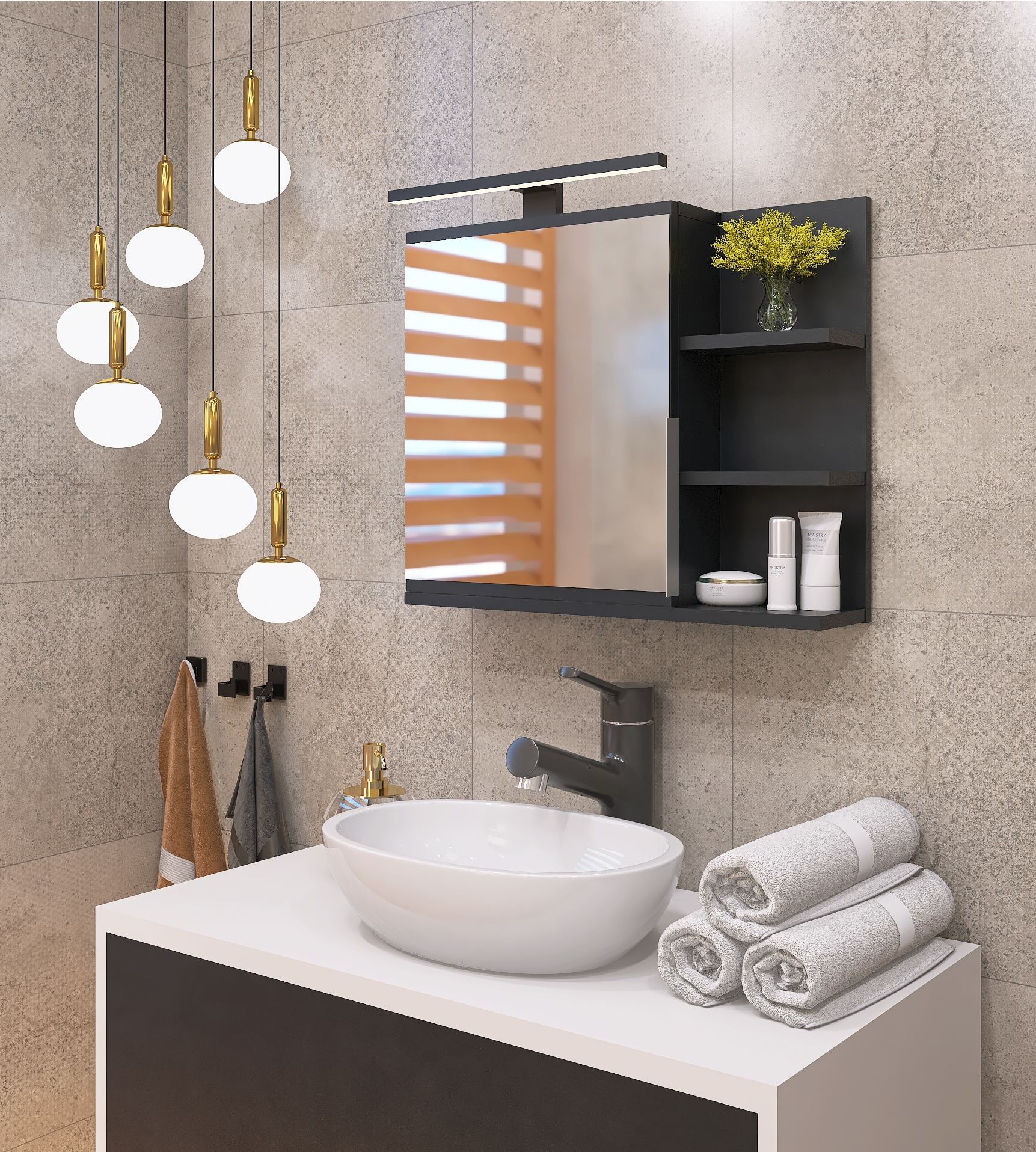 To idealne miejsce do ustawienia przyborów do makijażu i golenia, perfum czy apteczki pierwszej pomocy.