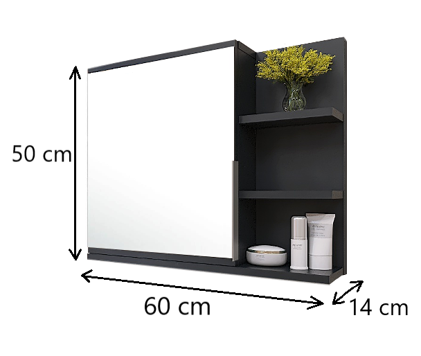 Modna i funkcjonalna szafka łazienkowa z lustrem, półkami i oświetleniem LED czarna - PRAWA