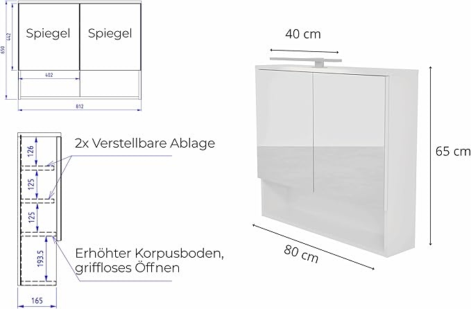 Szafka Lustrzana 80x65 cm z oświetleniem LED Szafka łazienkowa z lustrem
